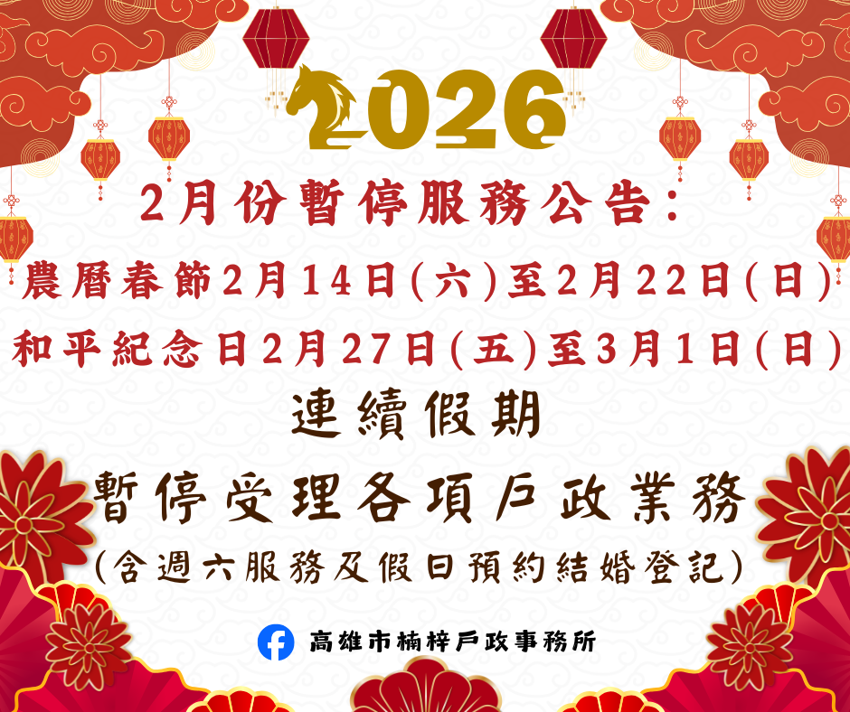 【重要公告】2026, 2月份暫停服務公....